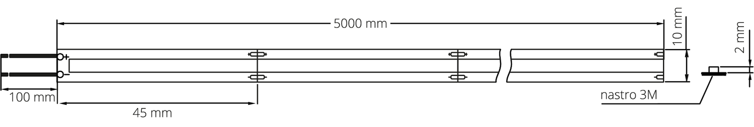 The Strip LED COB, with its 576 LED chips for each metre, allows you to obtain perfectly homogeneous lighting even on profiles without a screen or where the Strip is visible.