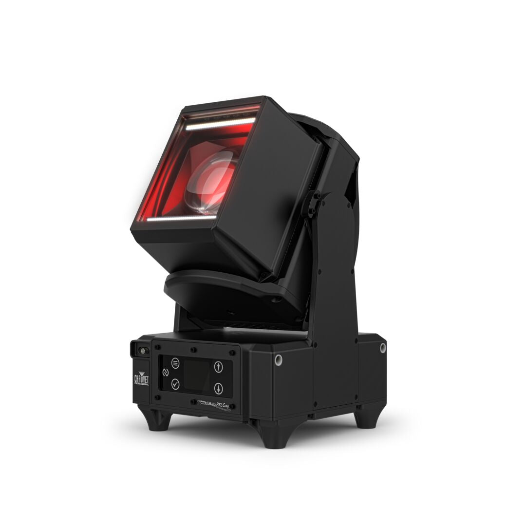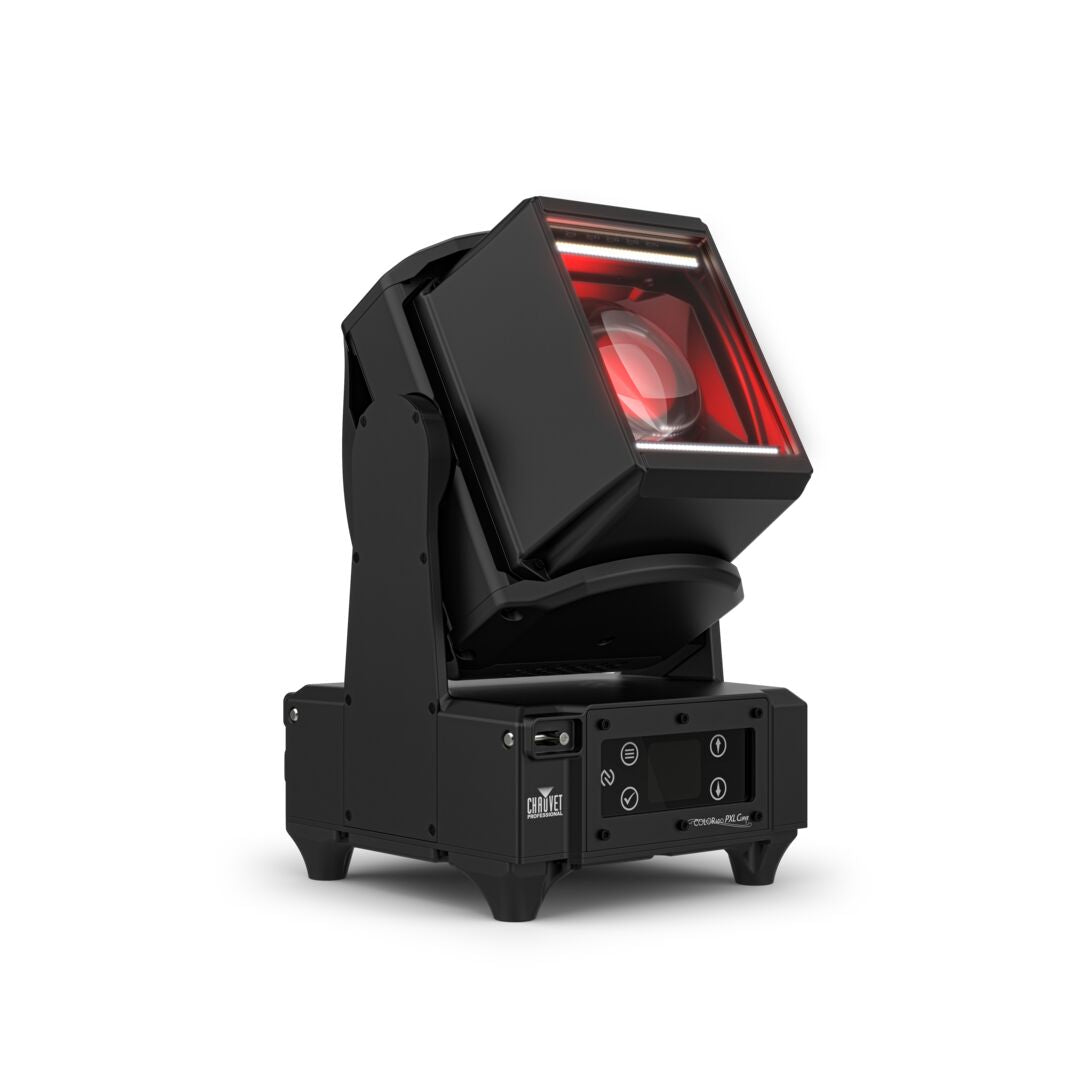 COLORado PXL Curve 1! Här har vi en kompakt armatur med en 120W RGBW LED med IP65-klassning och motoriserad pan, tilt och zoom. Armaturen ger extra kraft tack vare de dubbla linjära strobecellerna som sitter i över och underkant med både kallt och varmt vitt ljus.